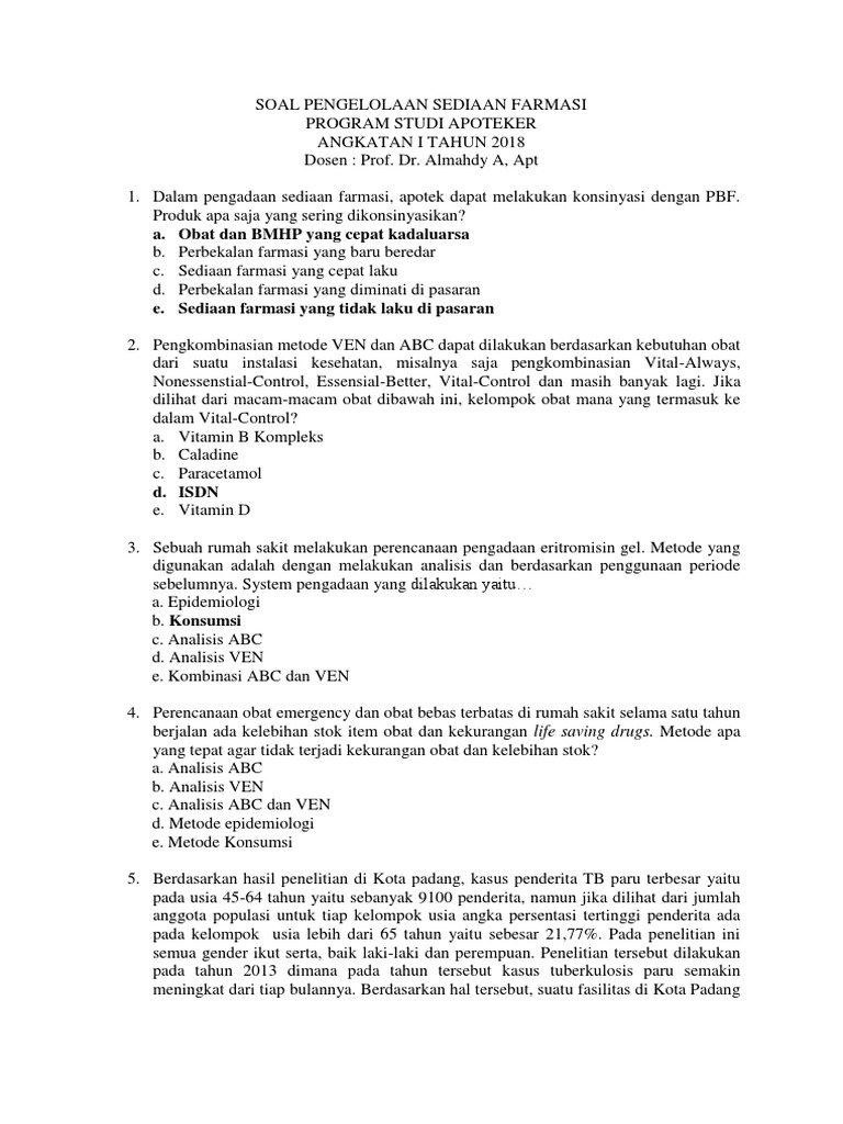 Soal dan jawaban pelayanan farmasi.