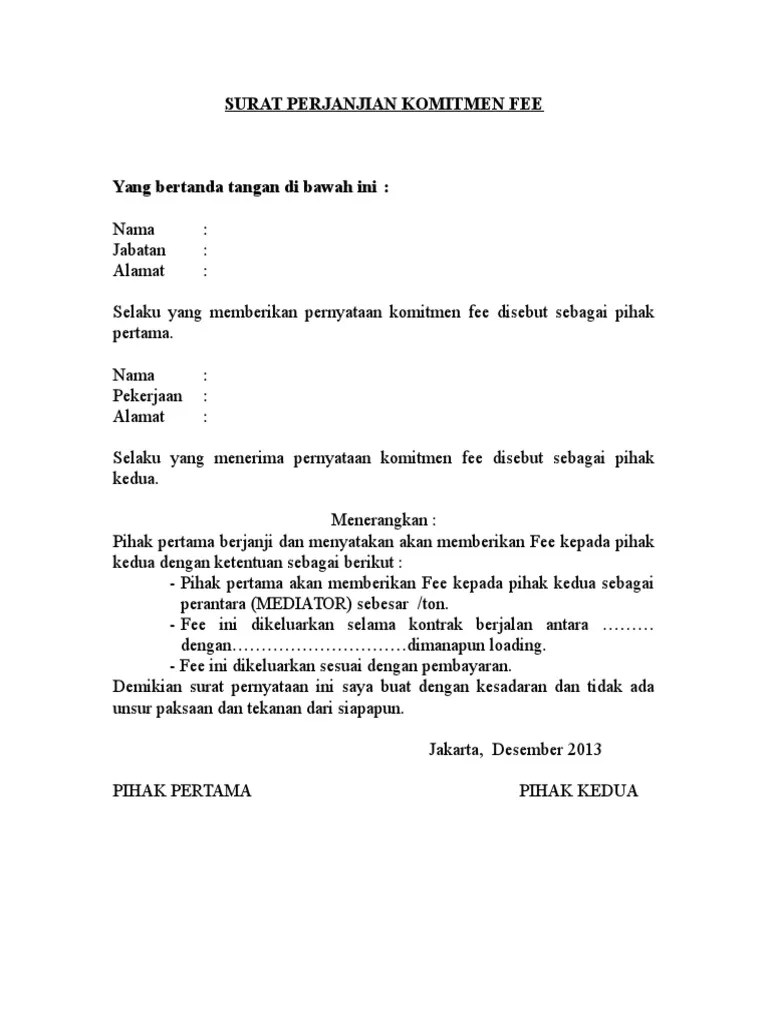 Surat Komitmen Fee - Contoh Surat Perjanjian Fee Yang Benar Dan Sah | detikLife : Sedangkan hingga saat ini anies membayar commitment fee pada …